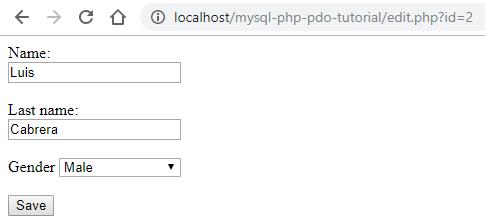 Now the form action is update.php. If you list your data and click on edit, you should see a form like this: