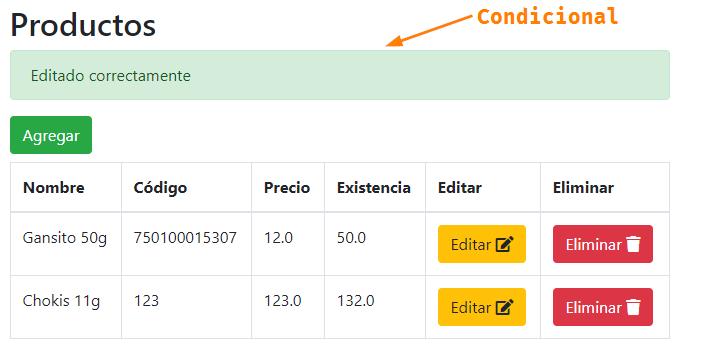 En la línea 6 y 7 se agregan atributos, en este caso un mensaje y una clase de una alerta de Bootstrap.