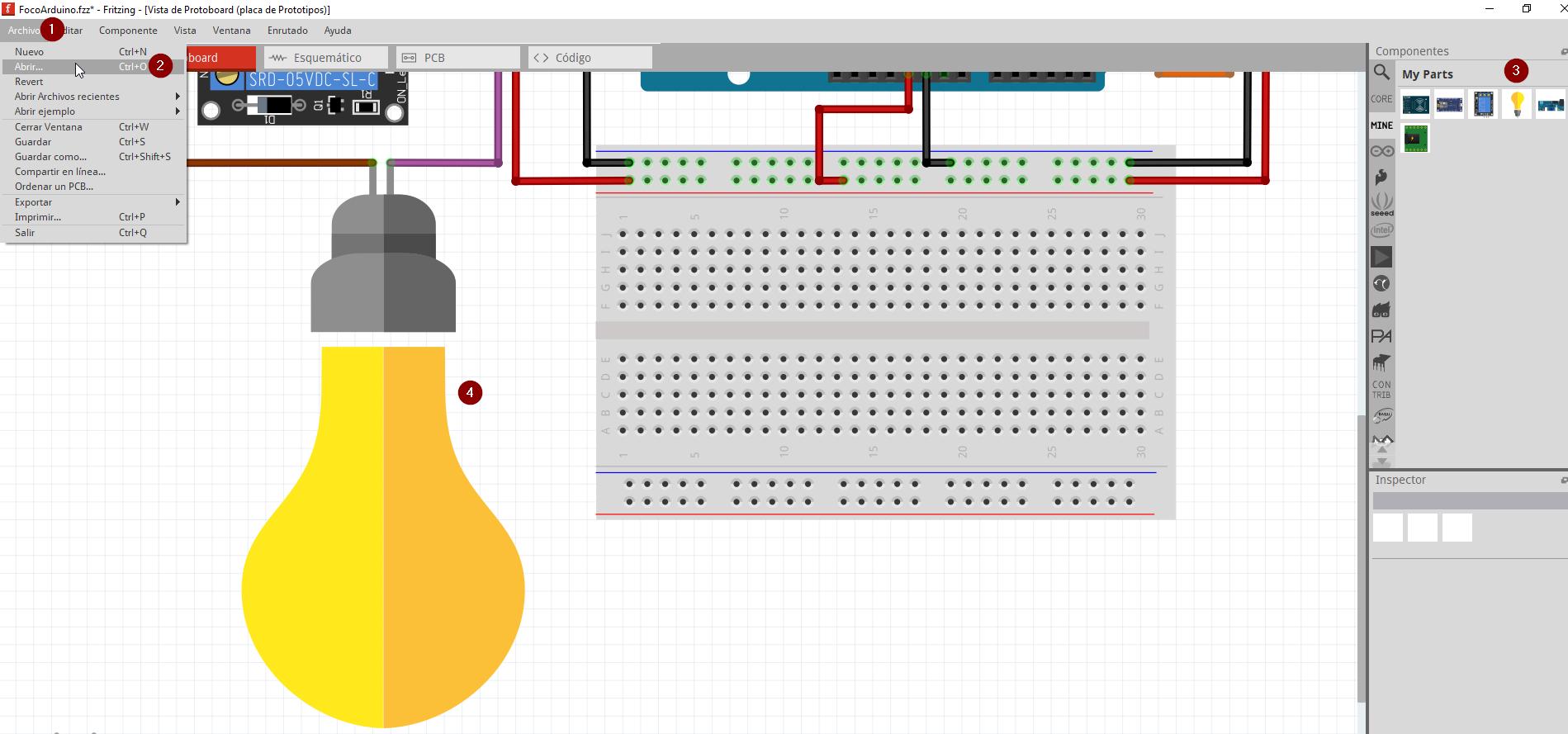 Utilizar componente Bombilla en Fritzing