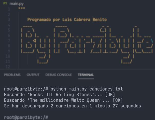 El código completo así como las futuras actualizaciones lo puedes ver en mi perfil de GitHub: descargador de canciones open source.