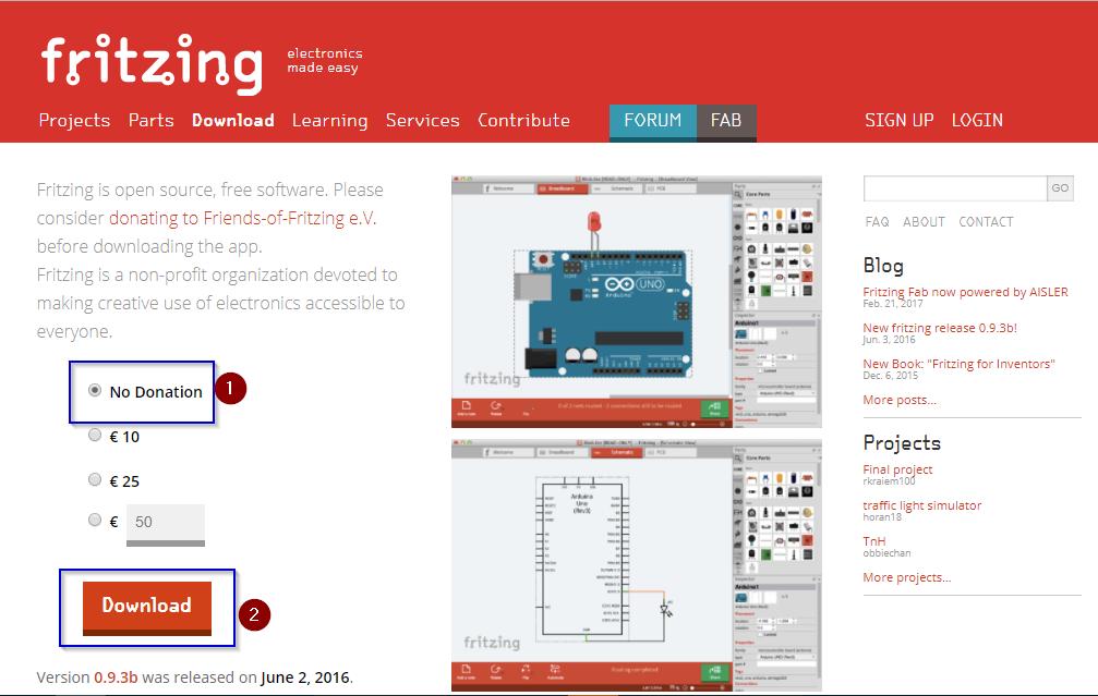 Actualización: ahora Fritzing requiere una donación forzosa, mira aquí cómo obtener Fritzing sin realizar una donación.