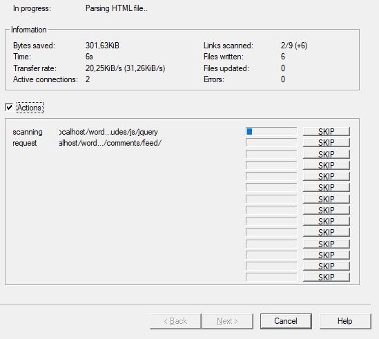 Resumen: mostrar cómo descargar un sitio web completo (con imágenes, scripts, etcétera) como HTML para su uso fuera de internet o sin depender del dominio, útil también para convertir un sitio de WordPress a un sitio estático (pero con cualquier página funciona).
