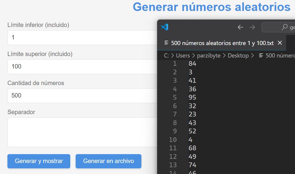 Recuerda que puedes acceder al generador en: https://parzibyte.github.io/ejemplos-javascript/generar-numeros-aleatorios/