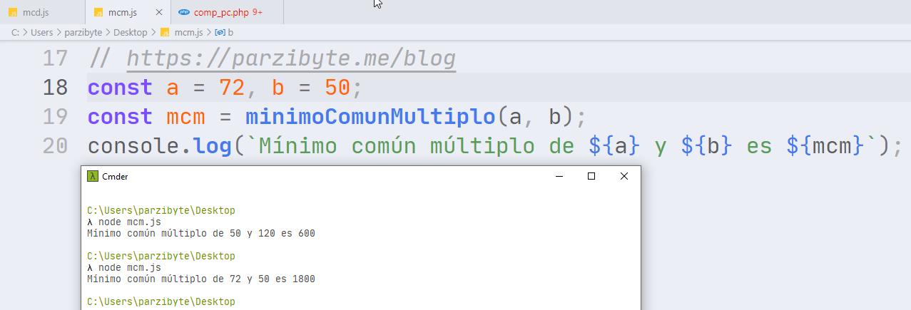 Como puedes ver ambas funciones se complementan o mejor dicho, para saber el mínimo común múltiplo en JavaScript necesitamos saber el Máximo común divisor.
