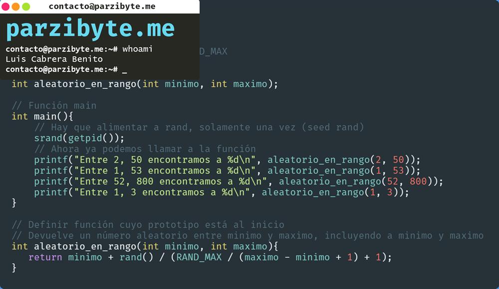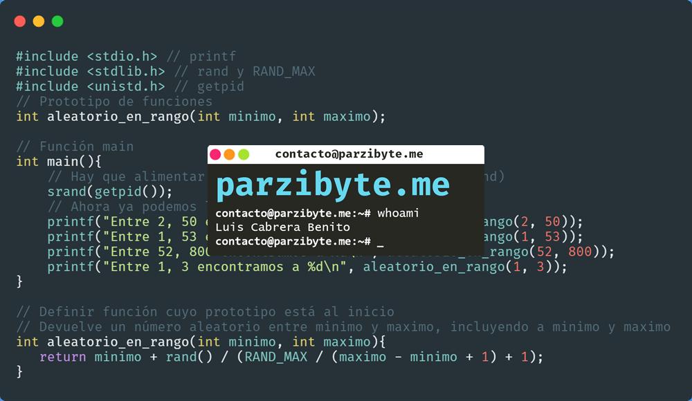 En la imagen de arriba se puede notar que he colocado una marca de agua de una “terminal” sobre una captura de código C (es sobre el post de generar números aleatorios con C).