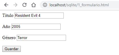 En caso de que el videojuego exista, mostramos el formulario previamente llenado. Para ello utilizamos el atributo value de la etiqueta input.