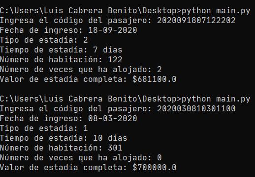 - Si el pasajero ha alojado antes en el Hotel, entonces se le aplica un descuento de un 3% por cada vez sobre el precio base.
