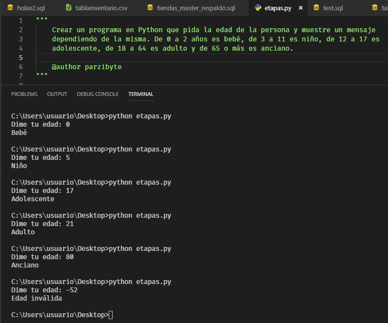 Vamos a ver el código necesario y el algoritmo de un programa en Python que indica la etapa de vida de una persona. Su definición es: