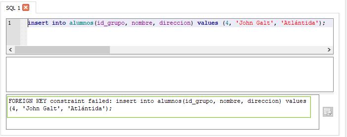 Lo interesante viene cuando insertamos alumnos con relación de grupos, pues si insertamos el id de grupo con un valor que existe todo va bien: