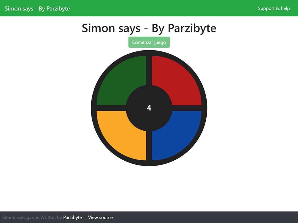 Puedes probar el juego de Simón dice en JavaScript en este enlace: https://parzibyte.github.io/simon-game-javascript/