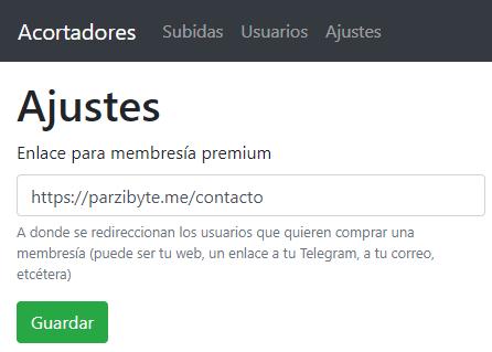 Debo mostrar este apartado para lo anterior; pues tiene que ver con la membresía para ver los enlaces sin acortar. Ese enlace se configura en ajustes, puede ser un post de tu blog, un paste, un enlace a tu correo, etcétera a donde será dirigido el usuario si quiere ser premium: