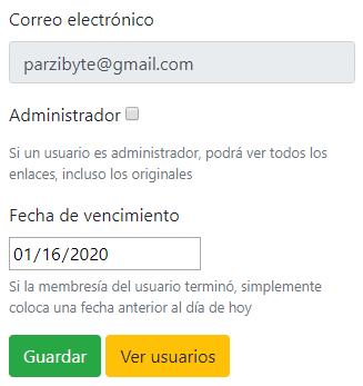 De este modo puedes agregar usuarios que, al iniciar sesión, tendrán acceso a los enlaces originales sin acortar. Ahora vamos a ver cómo gestionar estos usuarios y sus membresía.