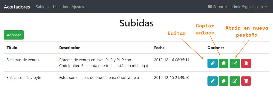 Una vez que la hemos agregado, el sistema de acortadores nos redirecciona a la página en donde están todas las subidas: