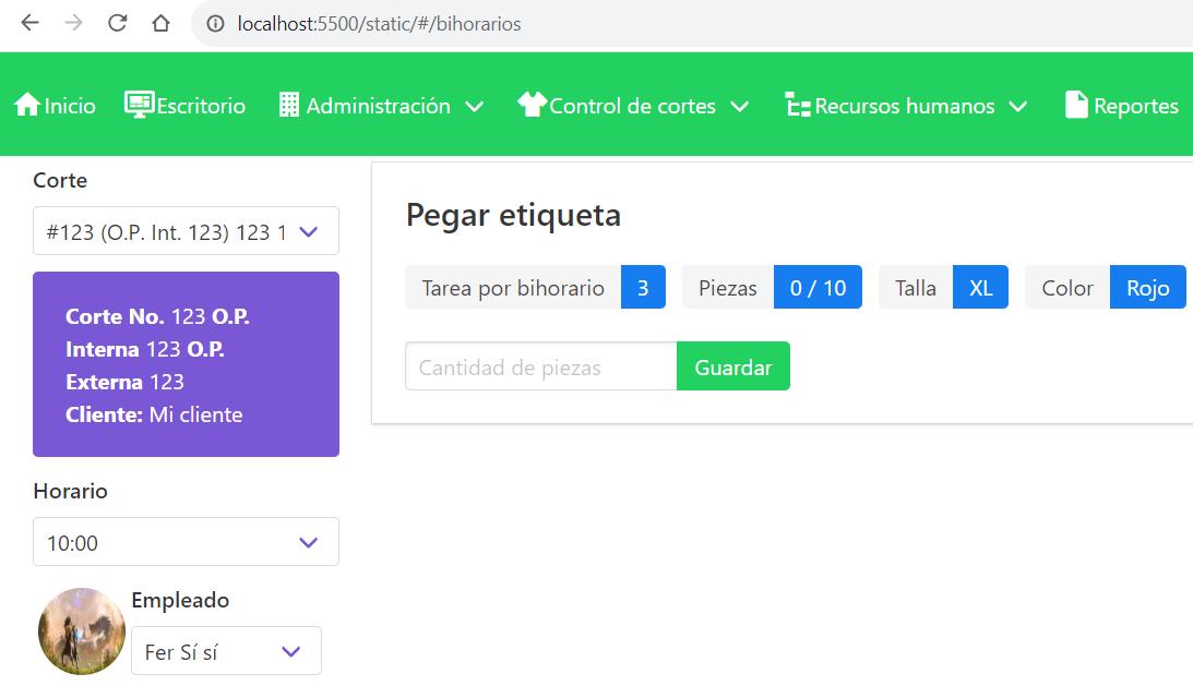 Así, puedes llevar el control de bultos de cada corte usando el sistema gratuito para maquilas que he programado y publicado. Luego puedes alimentar ese control de bultos a través de la toma de bihorarios: