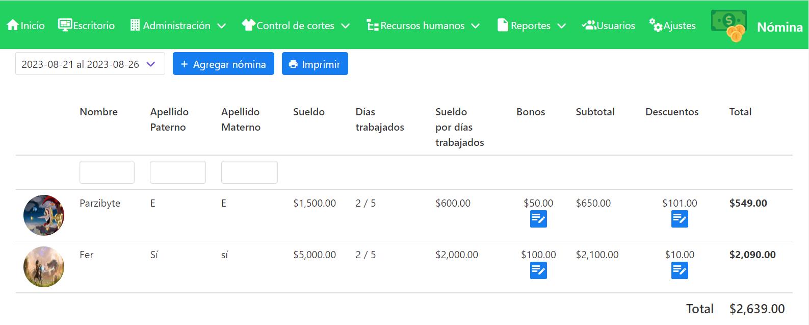 Te he mostrado solo los módulos más importantes de este sistema, y para terminar con el listado te enseñaré lo que contiene la nómina.