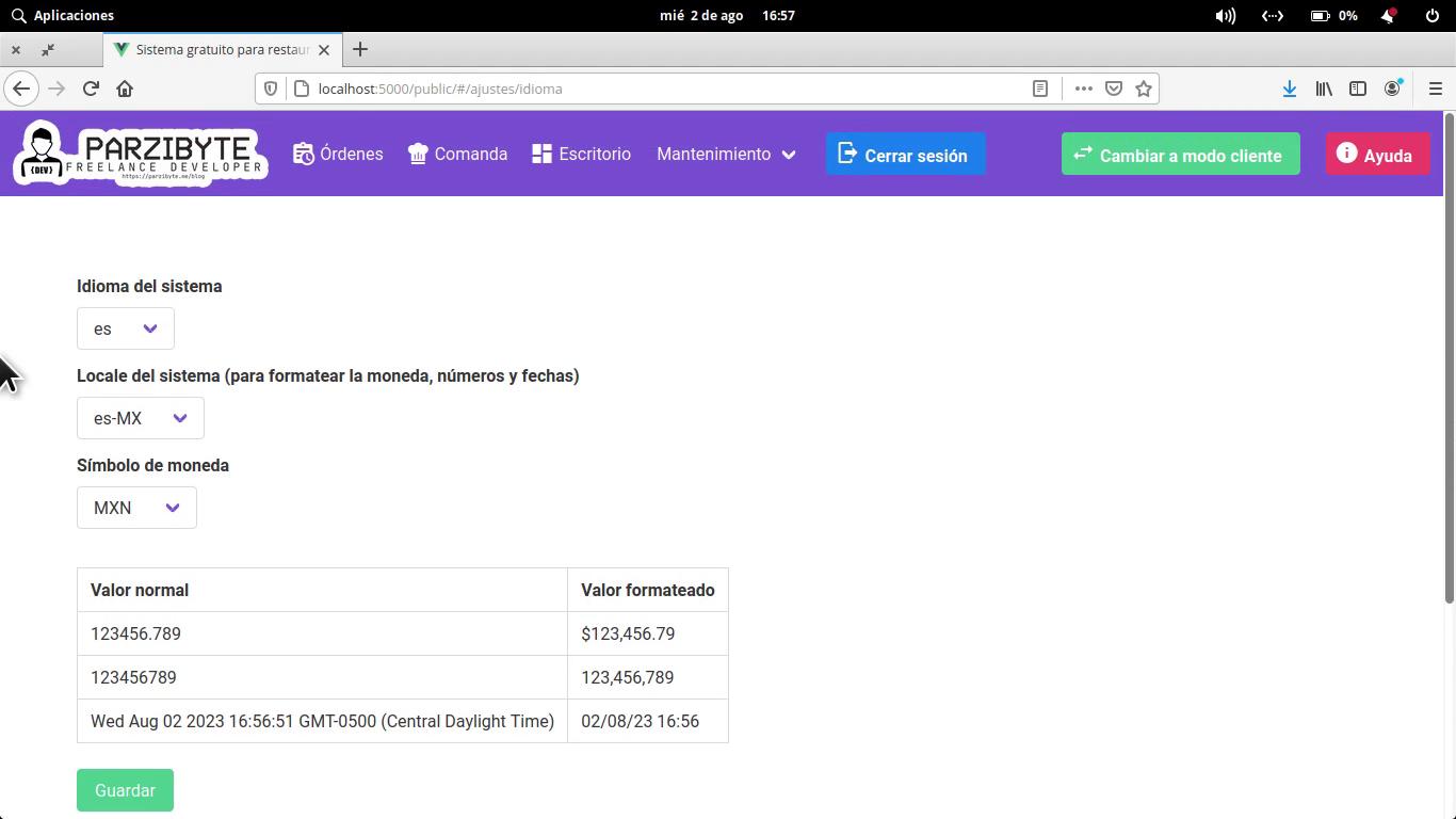 Este POS restaurant software soporta el idioma inglés y español, además de varios locales y monedas. Puedes configurar pesos mexicanos, quetzales, euros, etcétera.