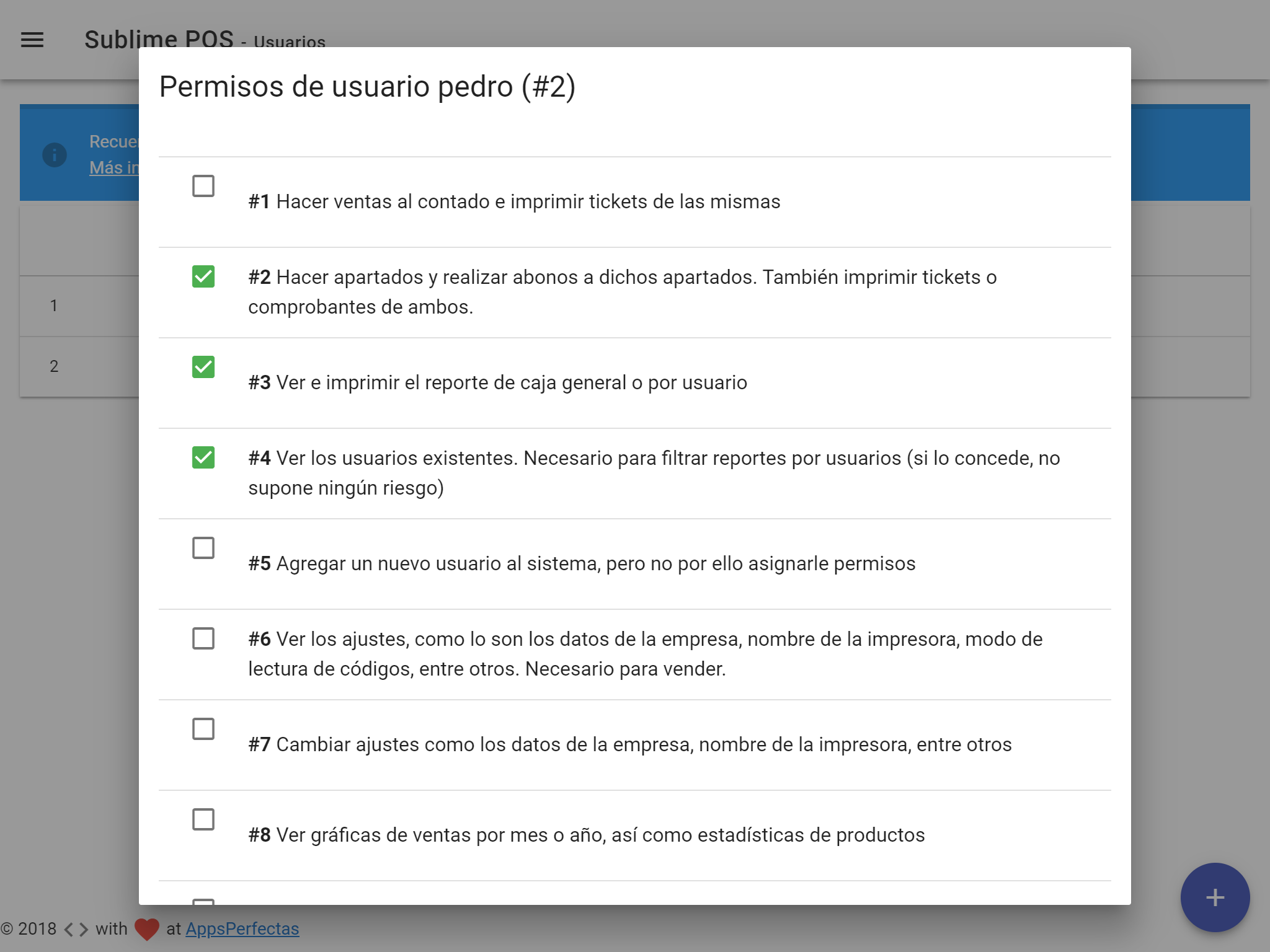 sistema de ventas asigna permisos a cada usuario del mismo.